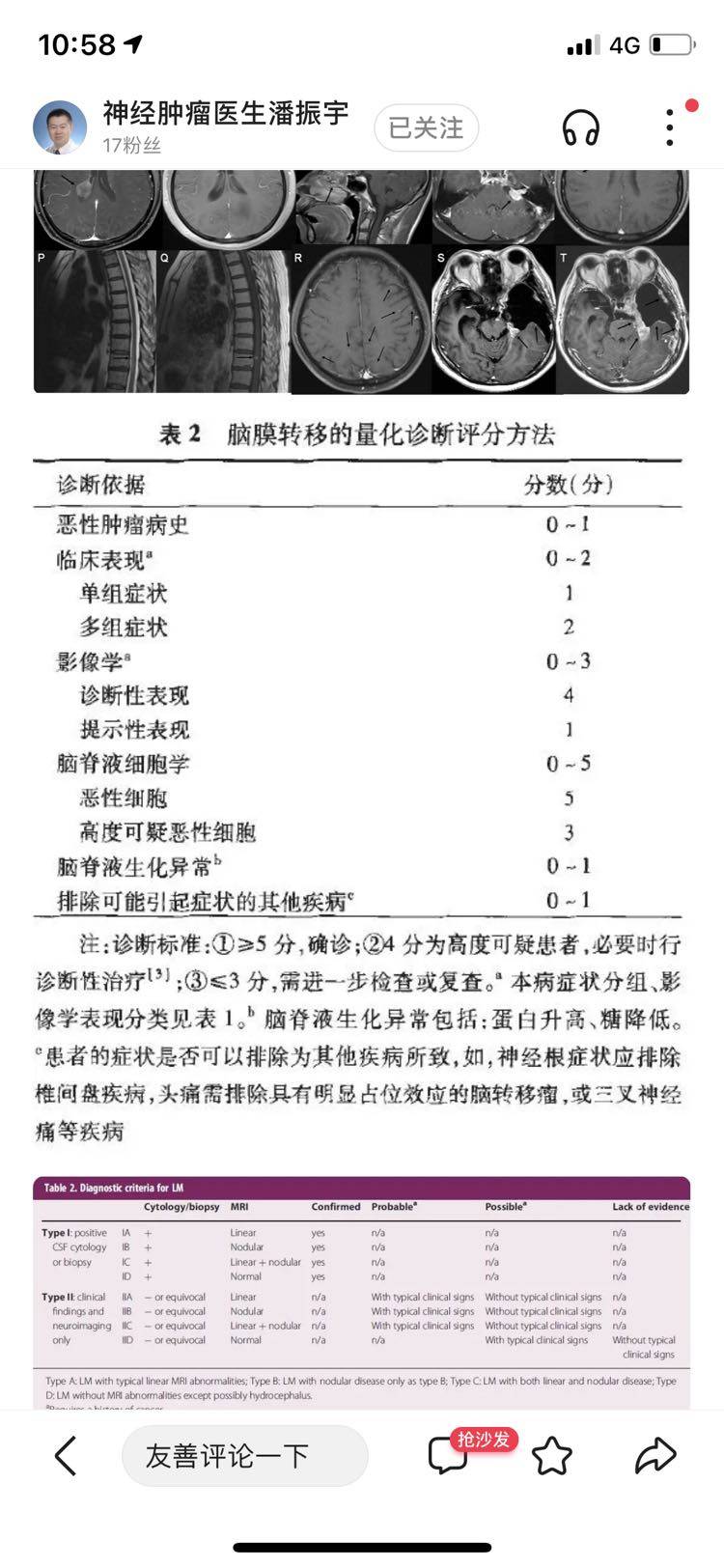 愿病友们永远不会用到这个脑膜转移评分量表!