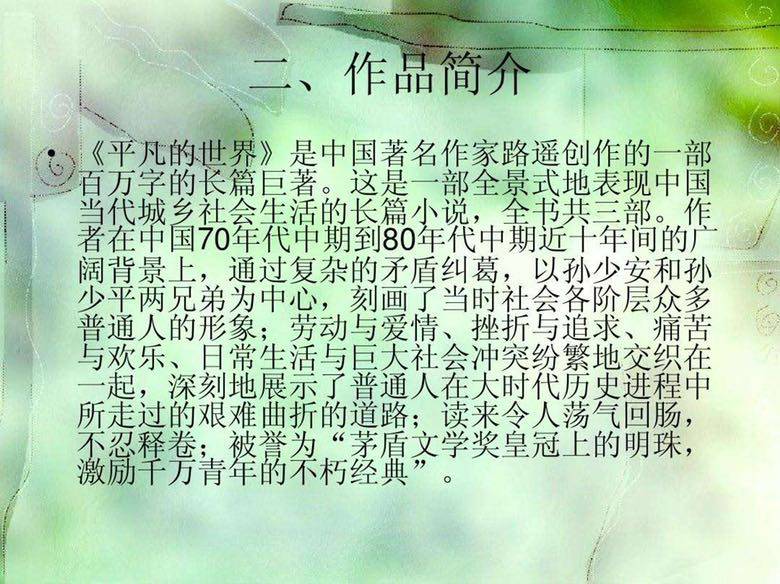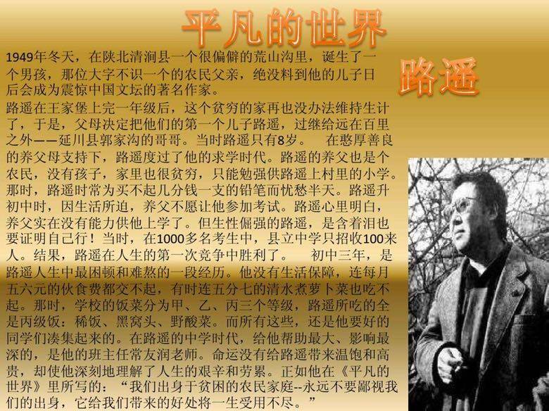 2、最平凡的⼈,也得要为他那个世界的存在⽽战⽃。《平凡的世界》