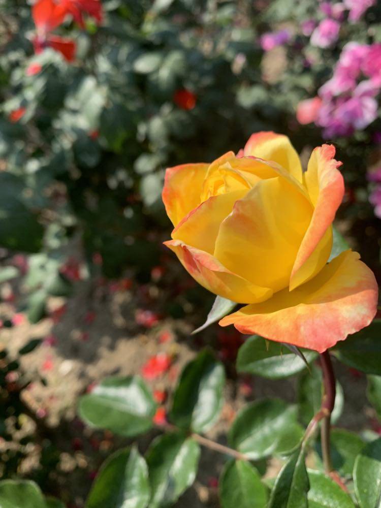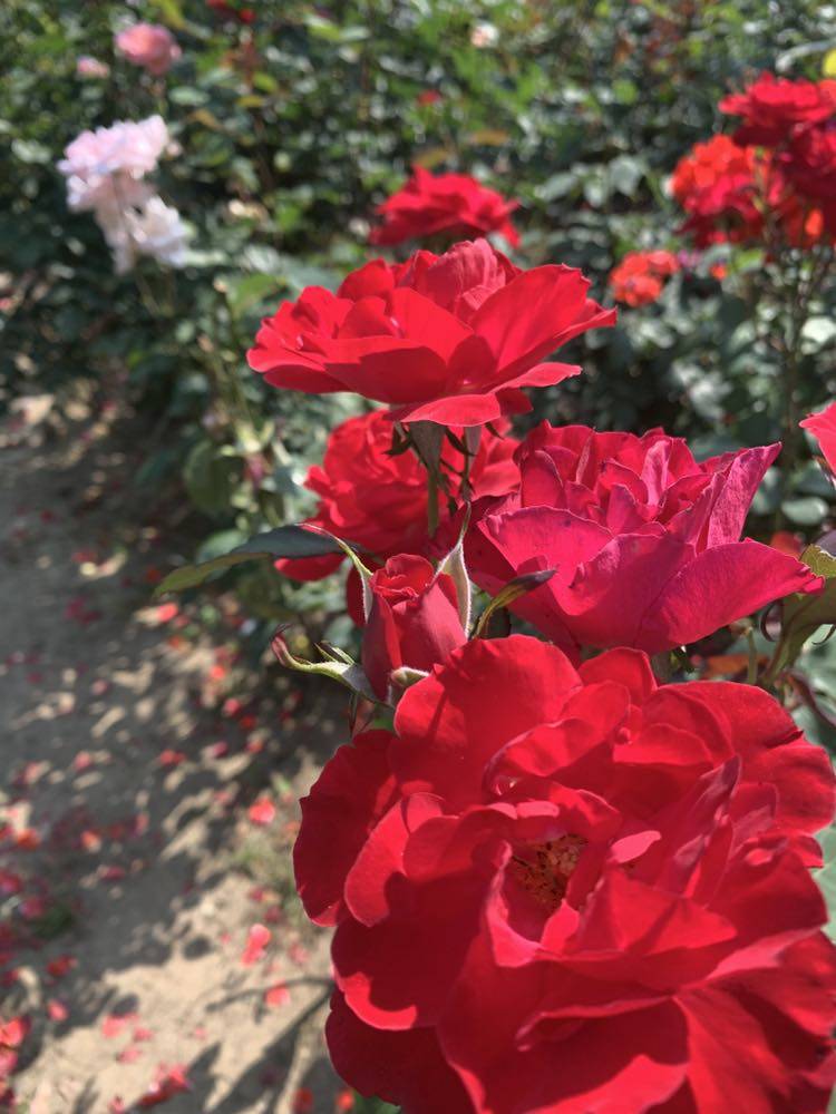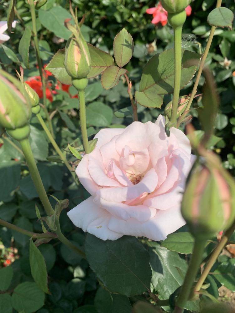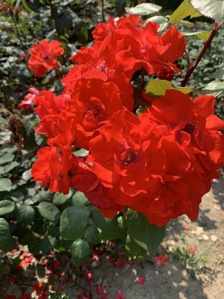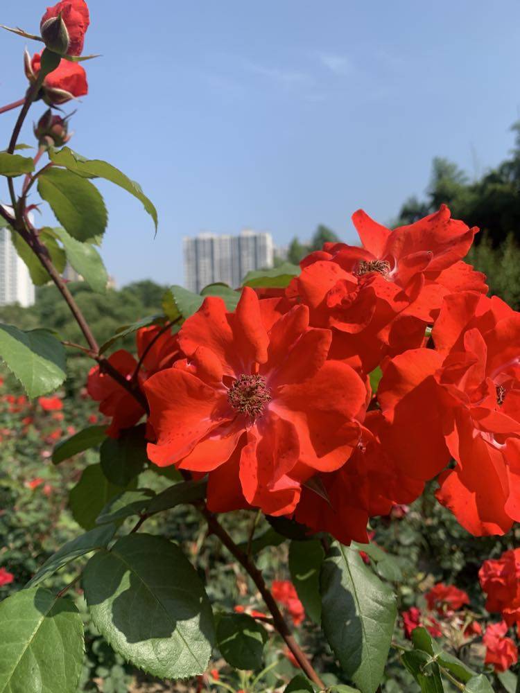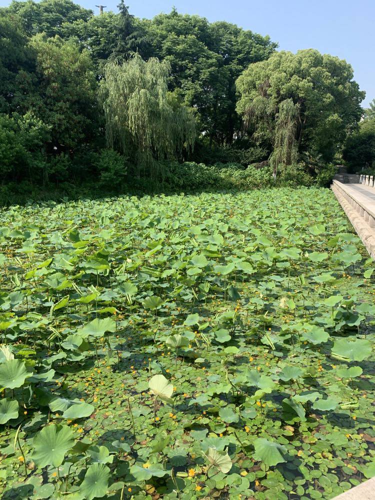 荷叶青青,杨柳依依!月季开放,争妍斗艳!