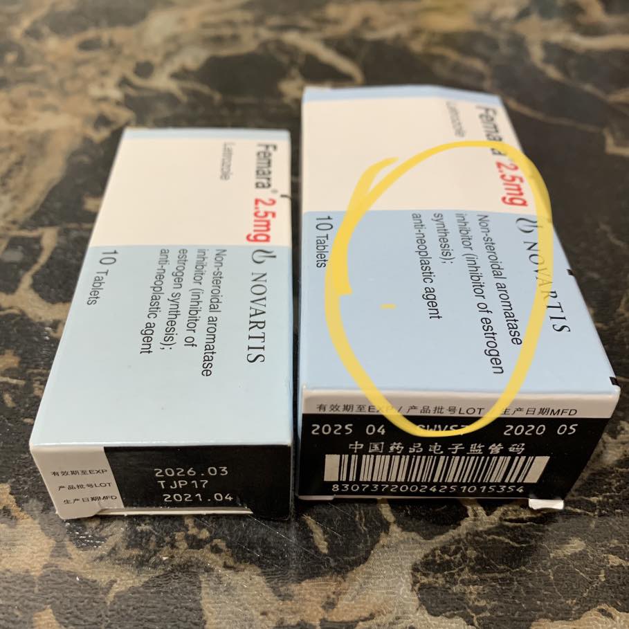 吃来曲唑的姐妹帮忙看一下,左图是我在医院开的来曲唑,右图是别人转让给我的来曲唑。图下黄色标记的和我在医院开的不一样,外包装比我在医院开的盒子高一些,四周的版面文字也都不一样。