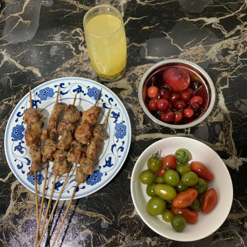 晚餐🍒樱桃🍅羊肉串🍖百香果水。