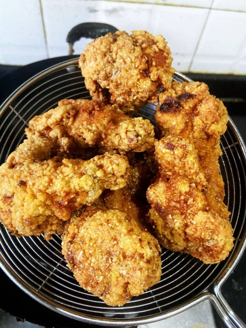 少吃点油炸的,我喜欢盐焗鸡,卤鸡之类的,这种脆皮炸鸡我一直就不喜欢,不过看着挺香的