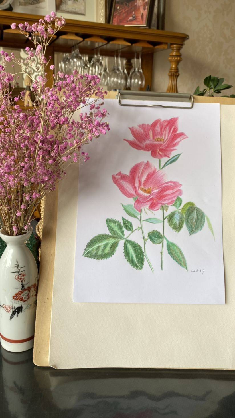 闺蜜退休后在宜昌读老年大学的彩铅班,想起七年前我就买了一套彩铅笔和两本书准备自学的,后来画了两幅完全不行就放弃了,符合我三分钟热度的人设,武汉的老年大学位置难求,那么让闺蜜发来她的课堂笔记开始自学,现在网络条件也非常好,抖音,小红书都有老师免费直播,有网友分享,学习了一些理论知识慢慢进入了状态,开始临摹,闺蜜也不断的鼓励,自信心开始建立,彩铅后期涂色非常需要耐心和时间,作品完成后也有非常大的成就感,能让自己高兴的事情就赶快做。