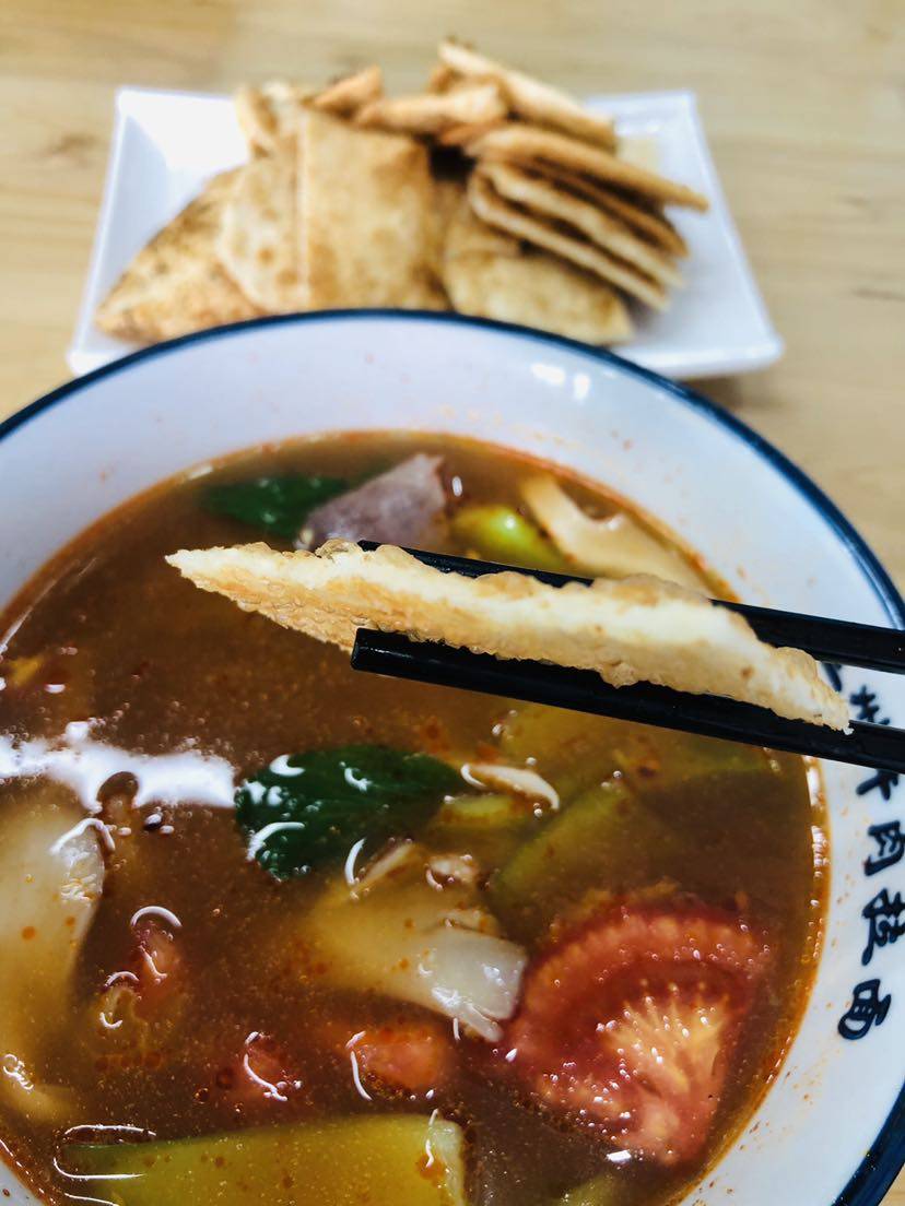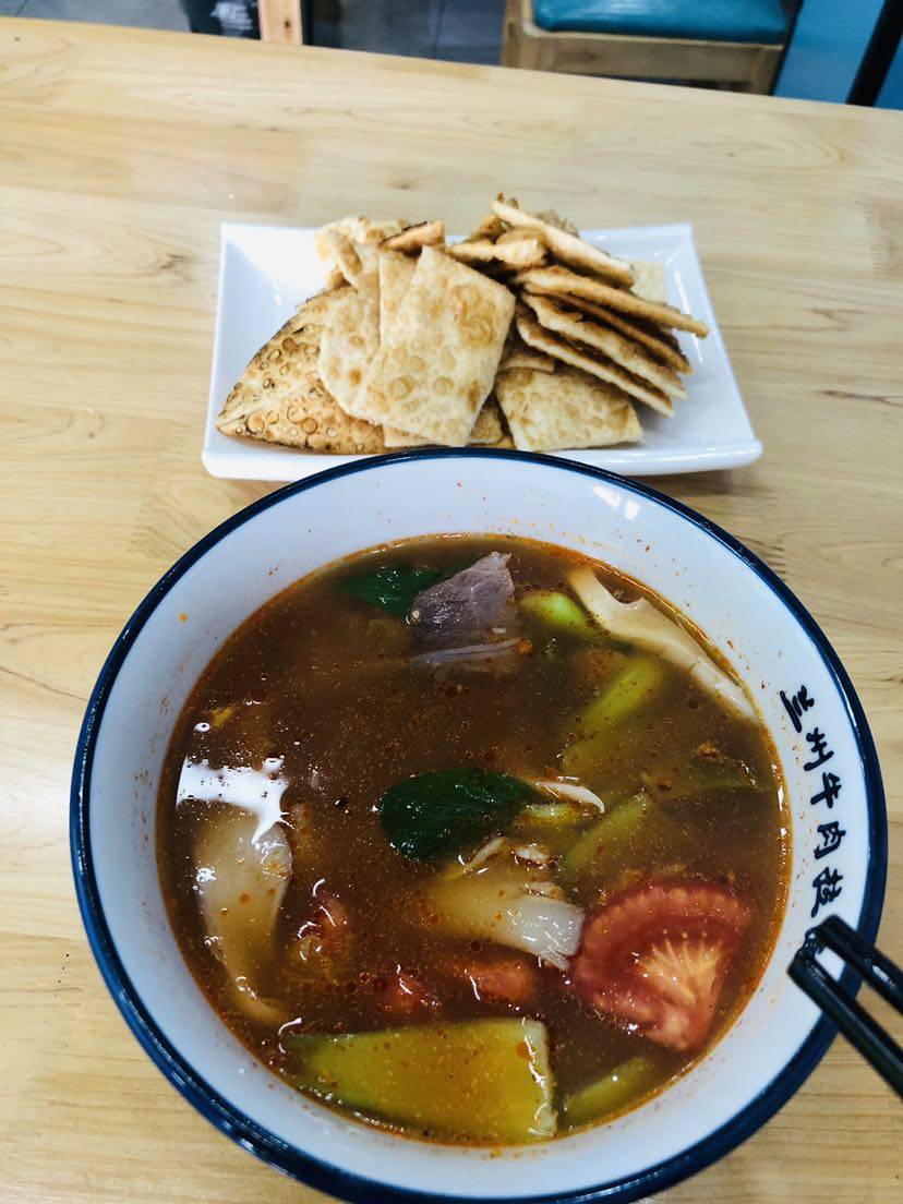 要了一份牛肉泡馍,一再交代老板不要咸不,我口味轻,结果端上来还是感觉咸的吃不下,特别是那个馍,我认为就是油饼,味道也不错,但是我的味蕾被白紫伤害,还没恢复,所以吃啥也没有味道,也罢,吃几口算几口,熬过这几天,我就约朋友去吃串串😄把这几天在吃的饭补回来👉话说,从手术到化疗结束,体重下降十斤,但是脸看起来却是胖胖的,应该是激素的作用。