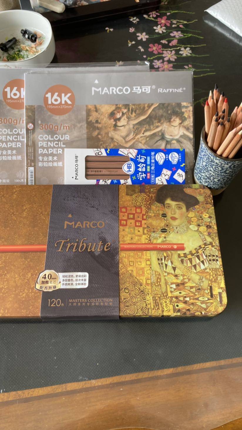 618没啥想买的,不买又过不去,买了两套彩铅笔,72色和48色各一,电动橡皮擦,色粉笔,彩铅纸一大包,刚收到货,今天又收到我家美女不声不响寄来的120色大师系列彩铅笔,我的水平配不上这么好的笔啊,目前,各路老师网友推荐的彩铅工具都已备齐,只等画艺突飞猛进,然而,这个没有捷径可走,只有靠练,趁着热情还在,练起来。