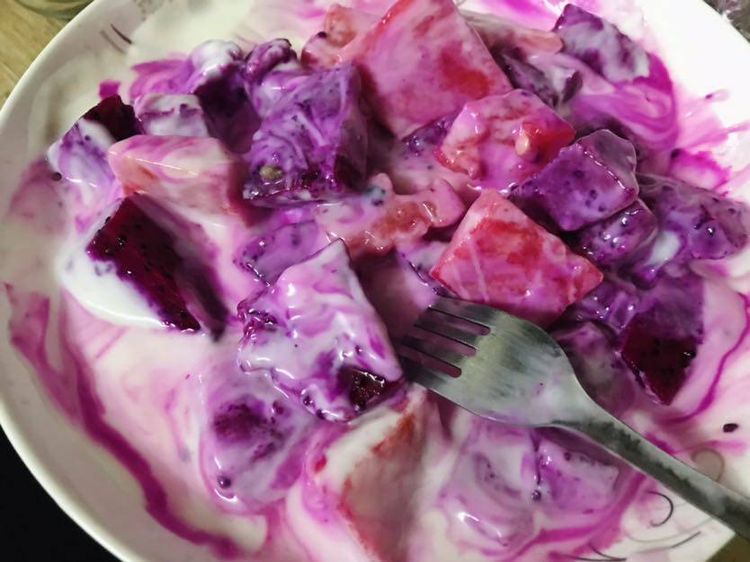 晚餐吃了一个火龙果,一块西瓜,加酸奶。饱了。