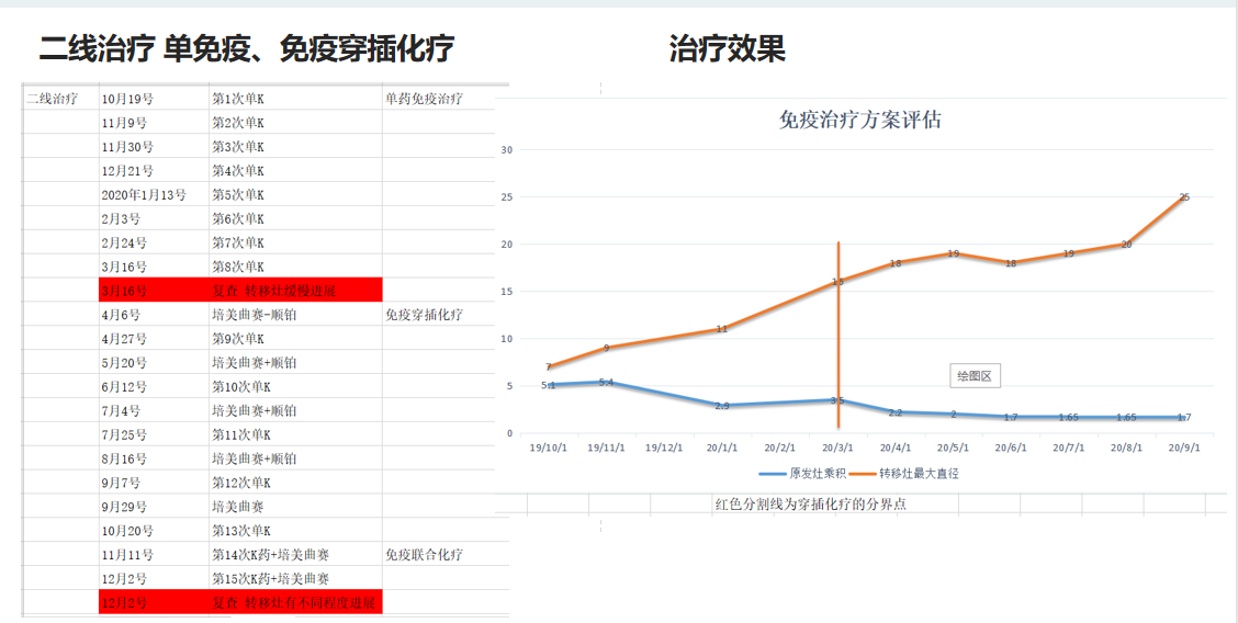 一线治疗整整四个月,10月16号被郑州医生告知进展时,我当即给我家医生打了电话,他知道情况后,直接问我,你考虑不考虑PD1,这句话在我看来很燃很有魔力,因为他对免疫治疗颇有研究,而我在一线治疗期间在了解到我们是高表达后也一直在了解免疫治疗相关的情况,早已做好免疫治疗的准备,于是我们的二线治疗开始了...