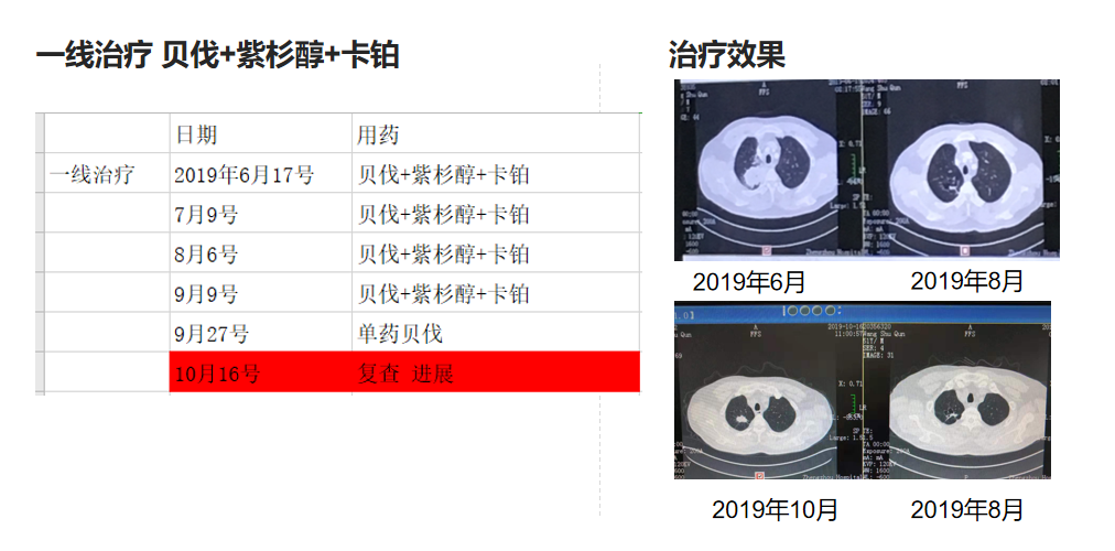 确诊后第一次的治疗无疑是艰难又最容易出错的,在第一次基因检测结果中我们的PDL1表达率有90%,郑州那边医生可能怕我们知道这个结果会直接出组,在用完药后才告知结果。我想如果当时我能早点知道PDL1表达率一线治疗不会选择副作用如此大的双药化疗加抗血管生成药。治疗效果是很明显的,副作用也是相当大的,进展也是如此之快……