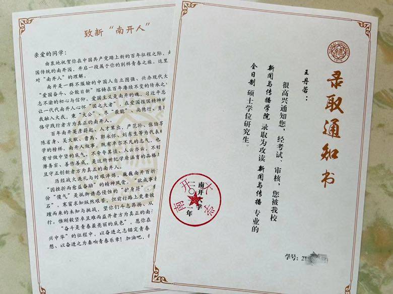 今年夏天真是收获的季节!今天我侄女收到南开大学研究生录取通知书,从四川大学考到南开大学读研,从一个985走向另一个985,目前成为我们家族的最高学历。希望三年后我儿子也能和表姐一样再上一个台阶。