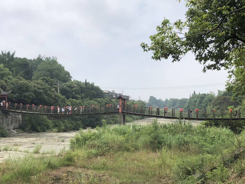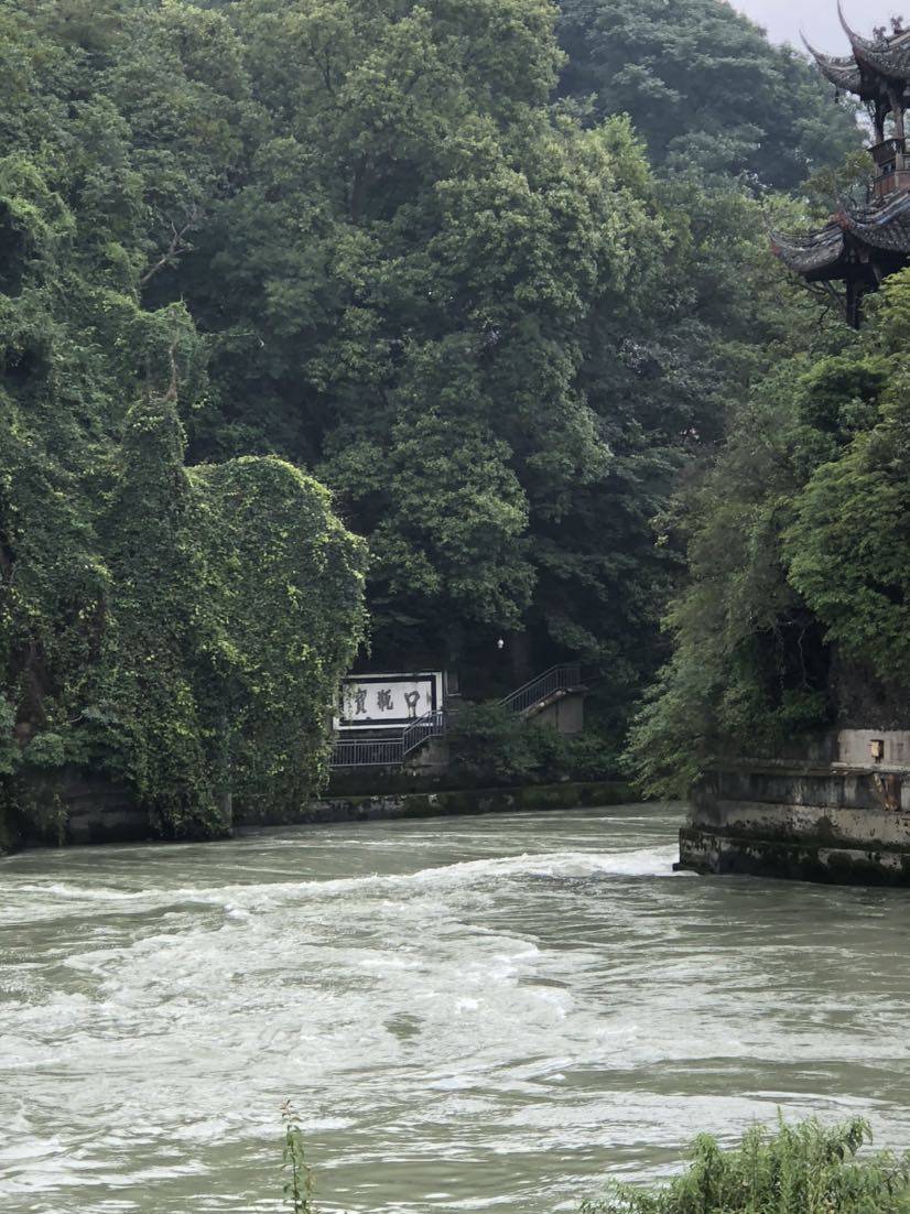 宝瓶口的水,供成都市民饮用,因为疫情,游客很少,吊桥上没人,以前来的时候,游客多,在上面晃的不敢走,这次慢悠悠走过来,感觉不错😄