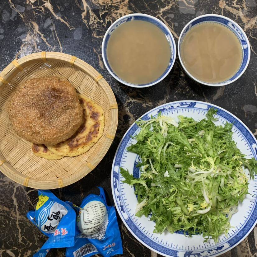 早餐🥣绿豆粥 苦菊 麻酱饼 玉米饼