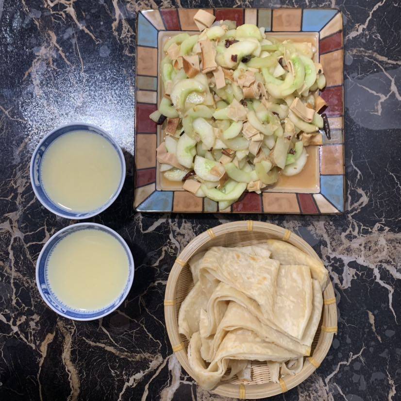 早餐🥣小米粥 饼 黄瓜炒五香干豆腐