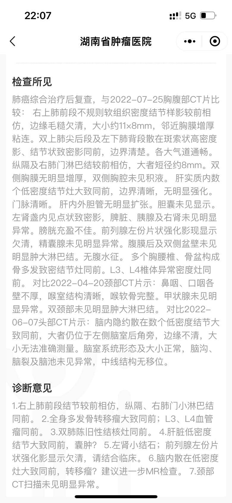 2月24日吃下第一次达克45毫克到今天已经半年了,没有减量,副作用其实挺大的 皮疹 甲沟炎 口腔溃疡 腹泻 该来的一样没少,不过老刘身体素质挺好,通过中医调理 每天白天喝中药喝各种保健品 例如低血钙就是金钙尔奇和骨化三醇 吃骨化三醇还挺有效果,已经连续4个月低血钙 这个月恢复正常了 还得感谢觅友推荐🙏,腹泻就是肿瘤医院开的双歧杆菌三联 现在一天吃一次 然后上厕所三次样子 还能接受,靶向药第二个月开始就有点肝功能损伤 肿瘤医院医生刚开始开的谷光甘太后面换了参泽舒 真的挺好的 吃了以后后面指标都在正常值了🙏。半年了 这次复查比较勤 因为上个月前列腺有片状强化 这次问主治告诉我没事 应该就是增生,每次复查我心比老刘都紧张 他一直都认为吃几年药 这个病就好了 也好 心态好就是好 45毫克 他现在除了手指甲沟炎 其他都挺好了 也能适当吃辣椒了 每次散步比我快多了 还带跳跃 真不敢相信他是骨转移的人。这次复查看抽血结果真的正常得比我们都还要正常 就只有影像学提示我们他是个病人 ,还好吧 一切同前 老刘有点失望 我安慰他 没有变化就是最好的结果 。关于有很多大神让我们减量 说副作用会小很多 我也问了医生 他说半年已经建立耐受了 就按这个剂量吃 我想着就这样吧 遵从医嘱 好好吃药 好好吃饭是我们现在唯一能做的了,愿前路一片光明。
