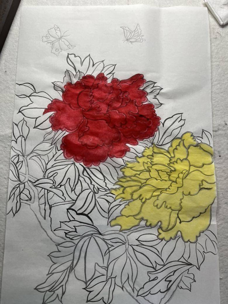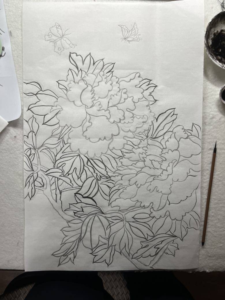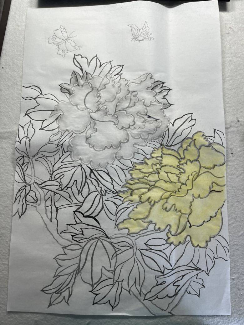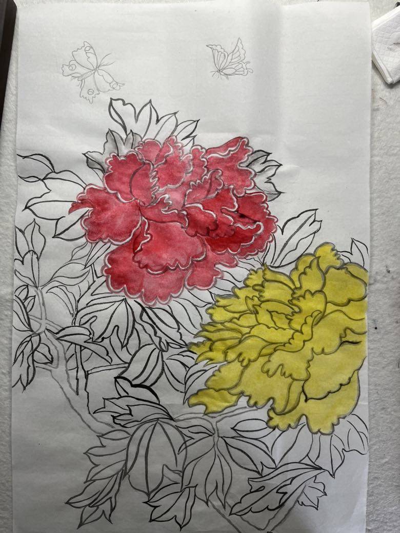 《牡丹图》画了三天。