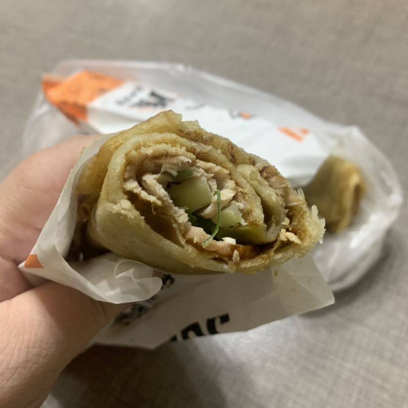 早餐🥓熏肉大饼,哥们起床晚了,没来的及做早餐,出去买的熏肉大饼。
