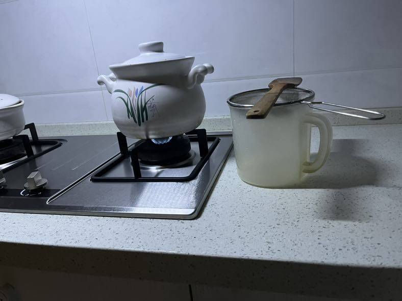 晚上熬了些小鱼汤。明天鱼汤面🍜当早饭