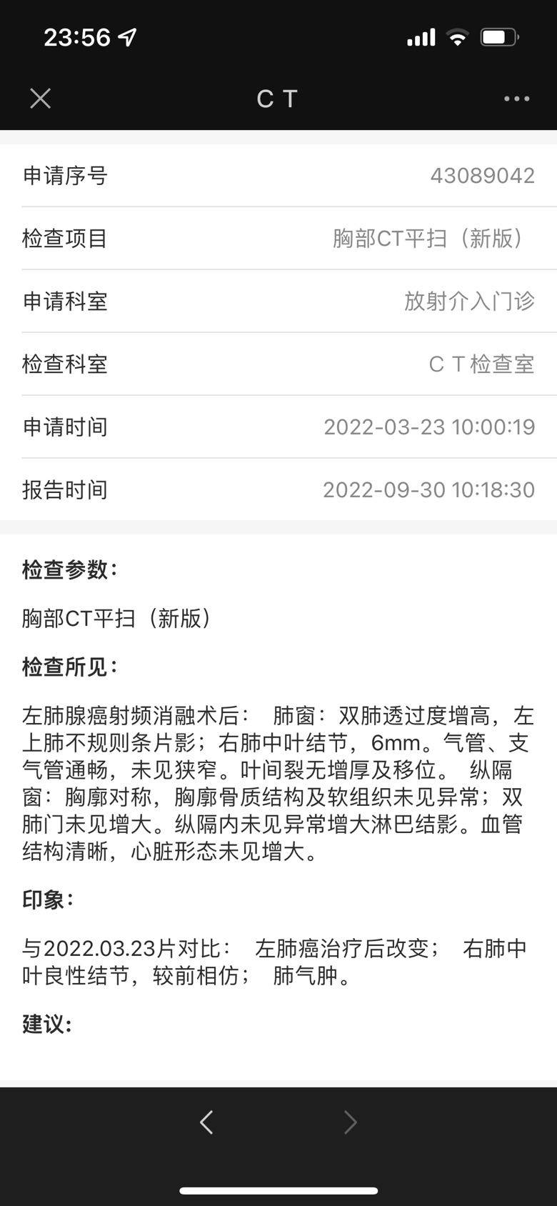 4、患者77岁,肺腺癌,一线奥希替尼服用17个月。近期检查血指标还可以,肺ct比较稳定,与前相仿。