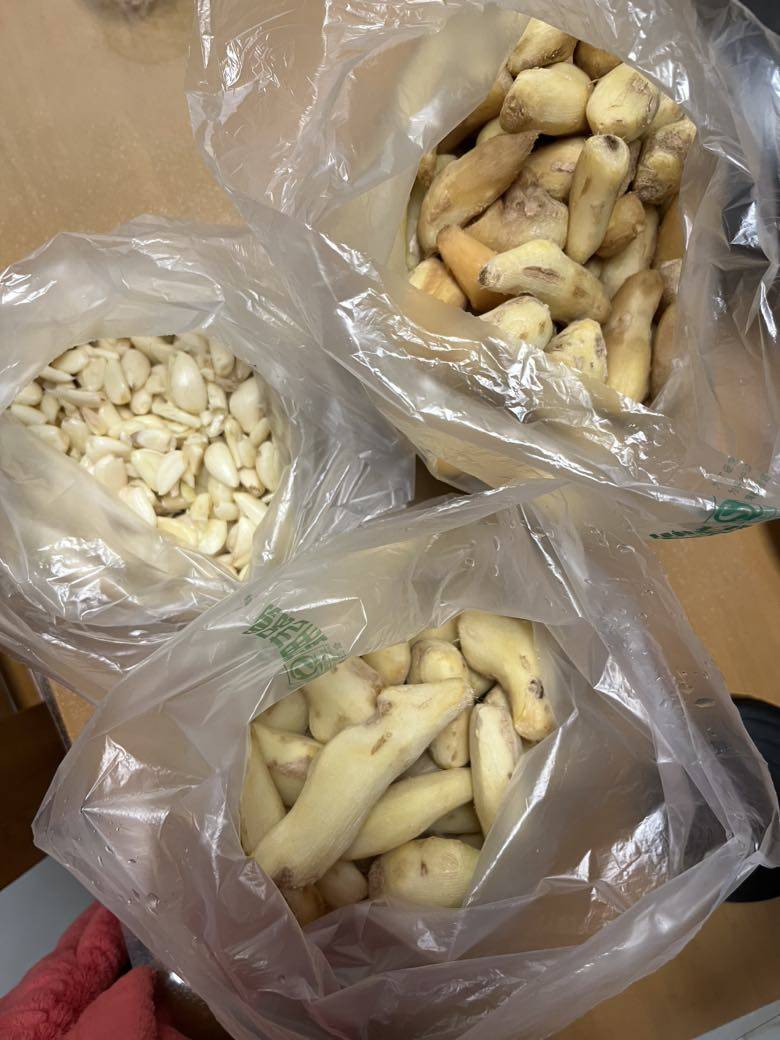 辅料都收拾干净安排好了,生姜、蒜瓣各10斤