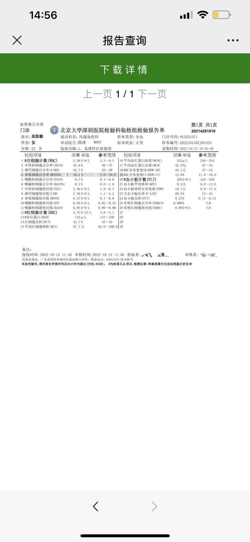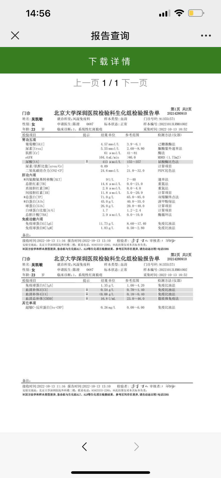 尿常规没查,一直以来都是正常的,医生这次就没给我来尿检,补体抗体一直不稳定,好像半年了都差不多