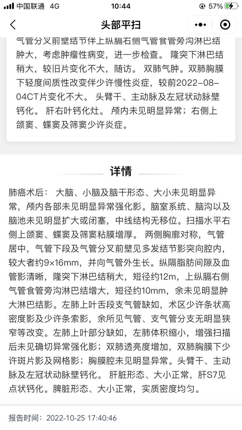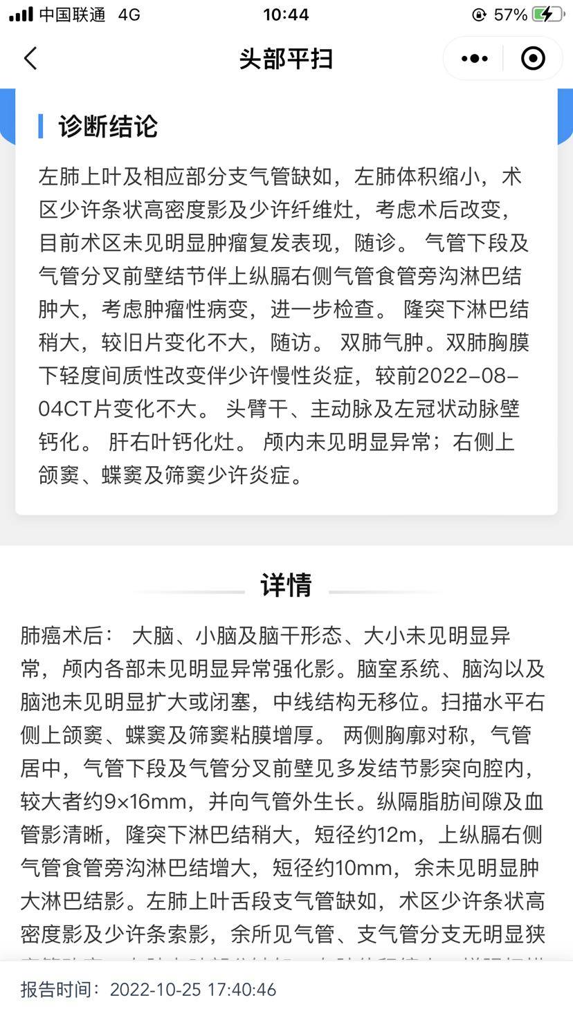 这次复查医生只开了个CT结果就出问题了,8月都还没有问题。求下一步怎么做啊。