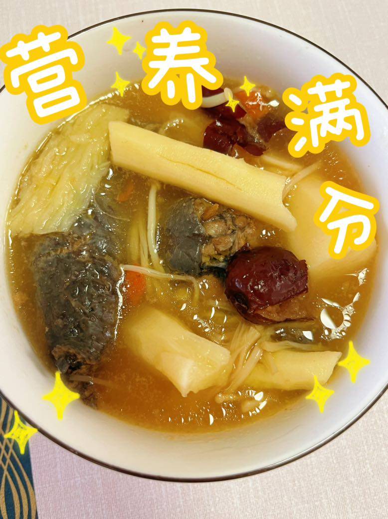 一只乌鸡,分了四份,今天用山药、金针菇做配料熬汤,营养加倍!