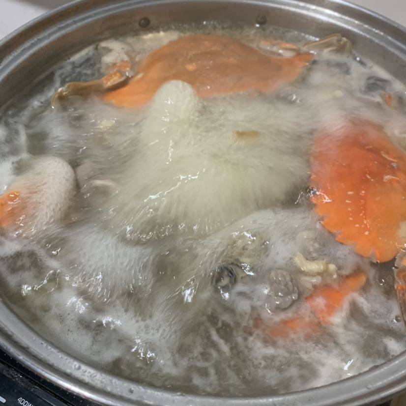 自制海鲜锅底(螃蟹,干虾仁和生蚝)