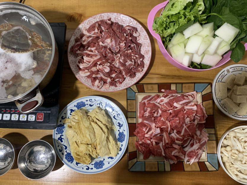 多亏我回单位养伤,否则又是一个人在家封控。还好在单位吃喝方便,老王忙乎一上午,我在小厨房准备午餐🍲火锅