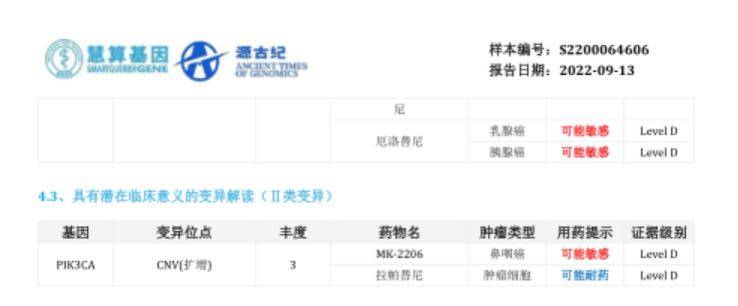 妈妈egfr19外显因子缺失+pik3ca cnv扩增,奥希替尼两个月复查。