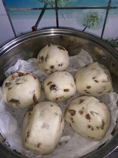 受病友启发,蒸的枣泥馒头,就把红枣泡好洗干净揉进面里,很好吃甜甜的,白面馒头都不知道就什么菜,原来的咸菜辣酱都不能吃了,做午后的小点心也很不吃,多吃点红枣对我们好。