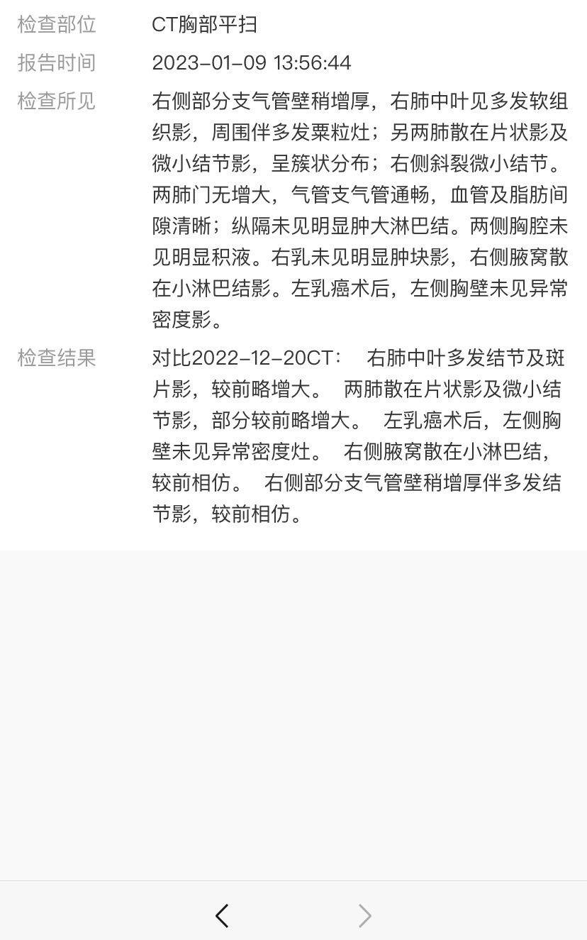 如图,肺炎没好彻底,肿瘤貌似还在默默成长,主治小哥哥给到我反馈:肿瘤继续变大中……主任给到方案:长春瑞滨➕赛普汀➕吡洛替尼。从临床战线转移到常规战线中来,接下去治疗,随时可能再次引发间质性肺炎!