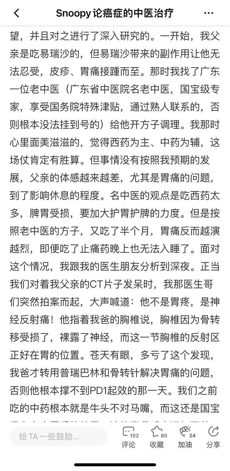 另外,我写这些不算要和谁争个短长,而是出于“日行一善”的目的,对那些误导性的言论予以抵制。我在觅健快四年了,一直如此。他不是第一个,如果天假以年,我能活得久的话,也不会是最后一个。记得以前怼过宣传“龙鸣闻香”还被人追着骂,结果后来有一天很戏剧性地那人给我道歉了,说是看了1818黄金眼的报道了解了真相。这次这个,把正规的,包括老四校附属医院的医生都按他的定义打成骗子,满嘴又是抖音那套浅薄的话术,看来是要把病友往抖音神医那里推。他倒是没有具体的推荐,所以我也不说他是骗子,但以他的信口开河,说一句妄人并不为过。反正命是自己的,大家自己珍重吧。
