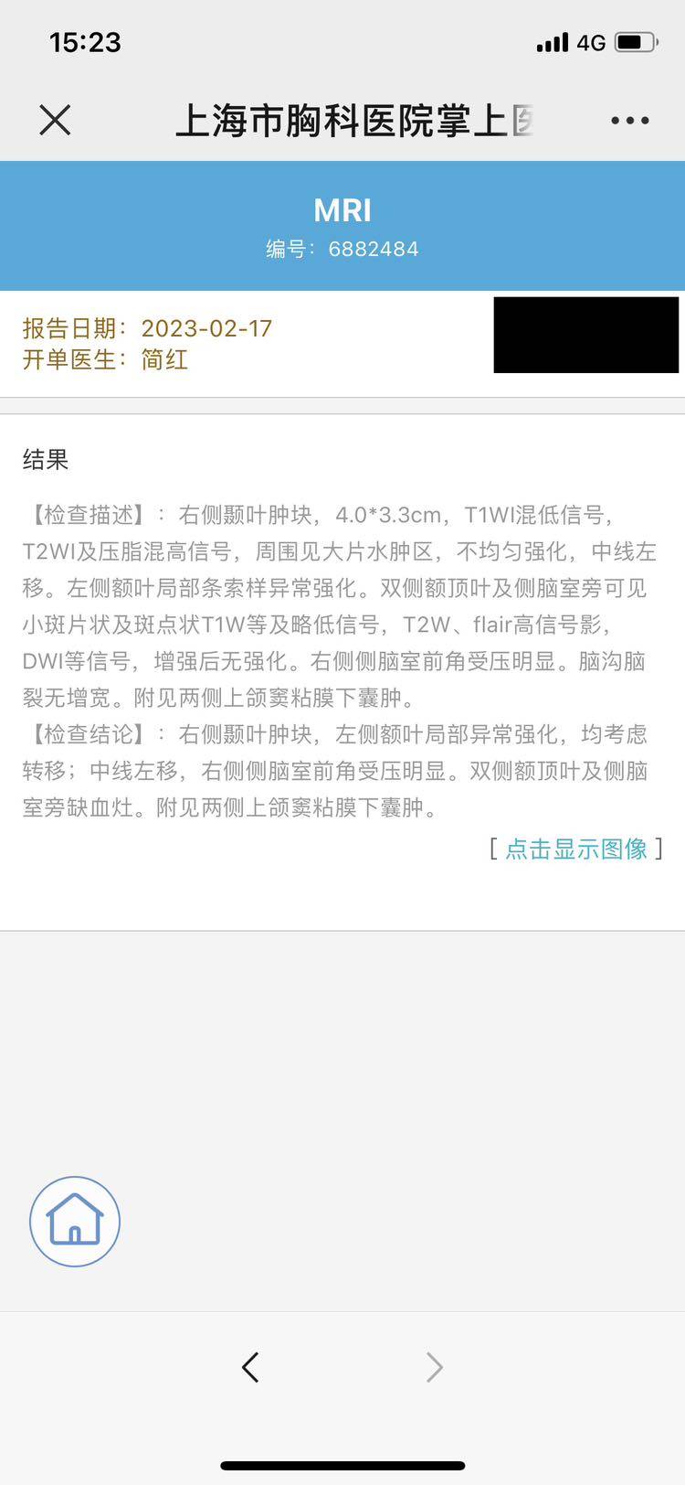 2/17定期复查,不幸我脑转了,且肿瘤长的较大4cm*3.3cm。像我们这种患有恶性肿瘤的病友,更要早发现早治疗。上一次复查是去年的7月中旬,到这次间隔了7个月,有点久了。一般来讲肿瘤三个月长一倍,如果去年10月-11月复查的话,是可以发现的,那时要比现在小一半就比较好处理了。我没有间隔三个月去复查,主要是,1,轻敌。一直以来,我恢复的都很不错,和常人无异,正常工作,正常生活!久而久之将复查的间隔拉长到了4个月。2,又赶上疫情,看病比较繁琐,又拖延了两三个月。3,没有症状。严格的来讲没有明显的症状。一般来讲,脑转会头痛,晕眩,抽搐,语言障碍,运动障碍,反应迟钝,记忆力衰退,耳鸣,视力衰退等。仔细回想一下,好像有过一次或两次耳鸣,但也只是一瞬。出门时偶尔会忘记带手机,钥匙等,但当时只是想自己年纪大了,爱忘事了。总之,不管是否有症状,都不要怕麻烦,怕花钱,坚持定期复查。切记!切记!