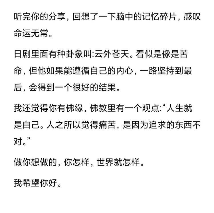 原生家庭的孩子容易有敏感 讨好型的人格的倾向 。一路走来,从敏感孤僻到爱自己爱他人,明明承受了那么多,却安静中散发着沉稳的力量。想起一句话“痛苦的种子一旦发了芽,如果它愿意沐浴阳光,日后定会开出绮丽的花”