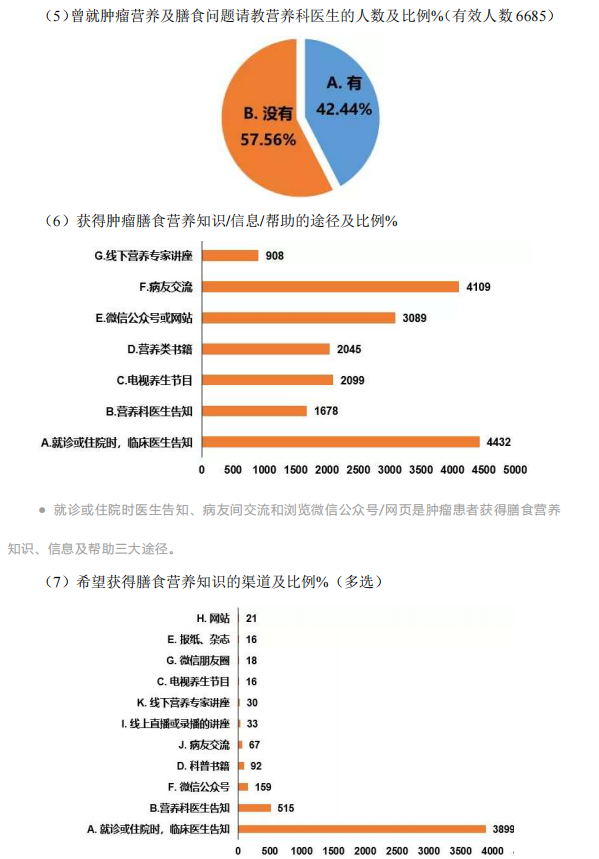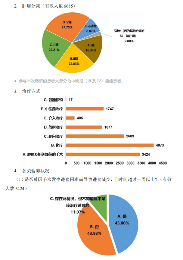 问卷发放期间,经逐一严格审核,共回收有效问卷 6685 份。经周密统计分析形 成《中国肿瘤营养膳食调查报告 2020》,现将部分数据向大家反馈, 以便广大病友、家属和医生朋友了解中国肿瘤患者的营养膳食现状与需求。