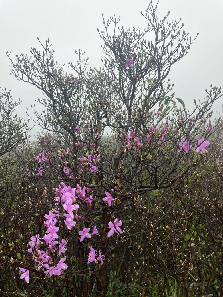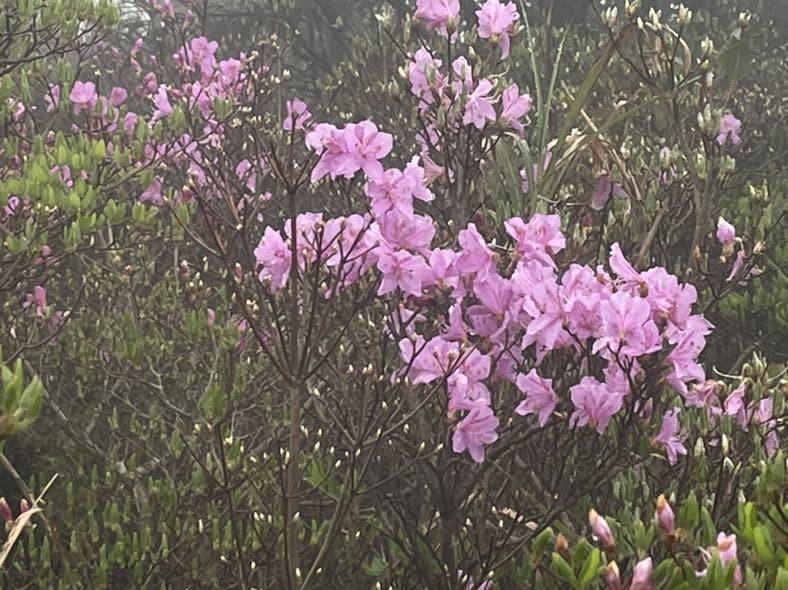 唯一欣慰看到些许的路边绽放的高山杜鹃花,无数的花苞预示着再过一段时间就是盛花期了。