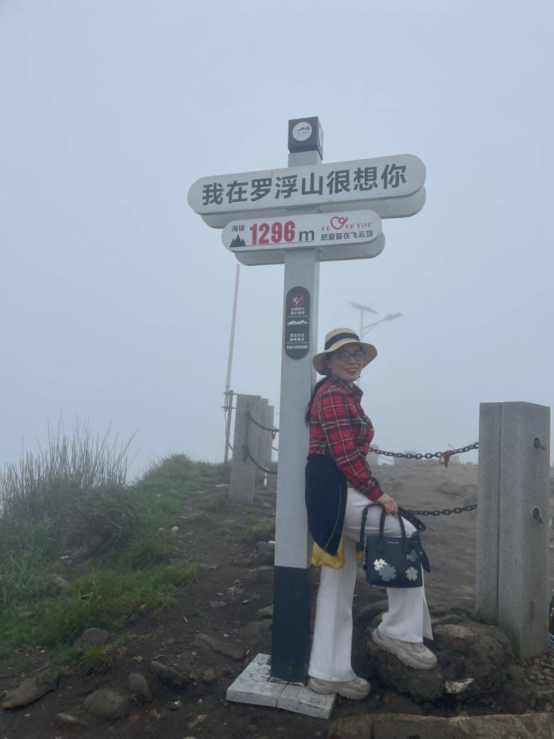 遗憾的是雾气太大了,除了能看到爬山的路,十米以外的什么风景都看不到,这个头发衣服都被雾气打湿。用了两个多小时到了山顶也是白茫茫一片,啥风景都看不到。