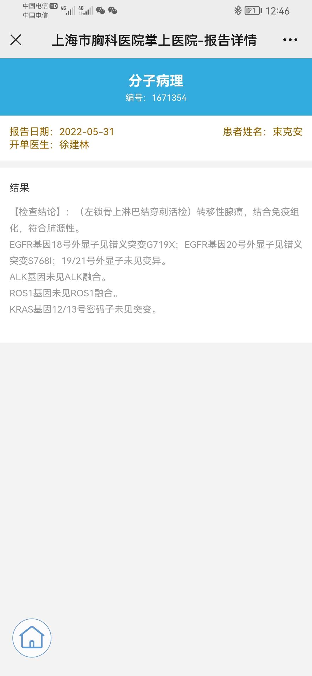,肺炎现在控制住了,后续医生让放疗,也不知道还有没有机会重启免疫,看你家的治疗方案是吃靶向药,想问下,感谢