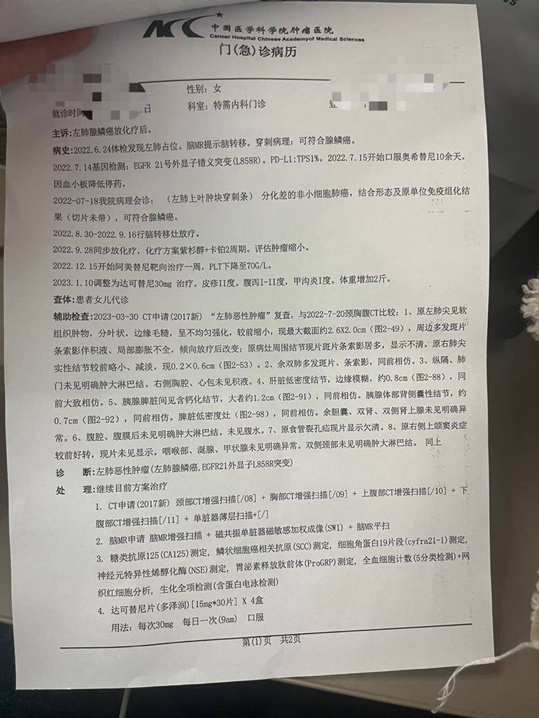 妈妈患肺癌已经有三年了,这三年来一直在接受治疗到现在,下面是妈妈检查以及治疗的过程。2010年10月,妈妈体检出肺癌IV期,纵隔淋巴转移,肝部转移,去省肿瘤医院复查,做了PET-CT,结果一样,省肿瘤