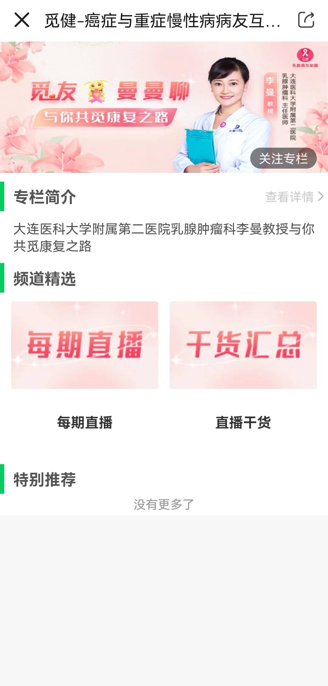 为了传播乳腺癌权威防、筛理念以及最新诊疗进展,我们将目光着眼于乳腺癌患者的痛点和需求,大连医科大学附属第二医院的李曼教授觅健互助圈平台携手合作,开设了「觅友·曼曼聊」系列直播栏目,帮助乳腺癌患者拿起手机就能与专家线上交流沟通、互助分享,了解乳腺癌靶向药物应用及管理的相关知识,使患者在靶向治疗过程中也能够“临阵不慌”、“指哪打哪”,发挥出靶向治疗的最佳疗效!