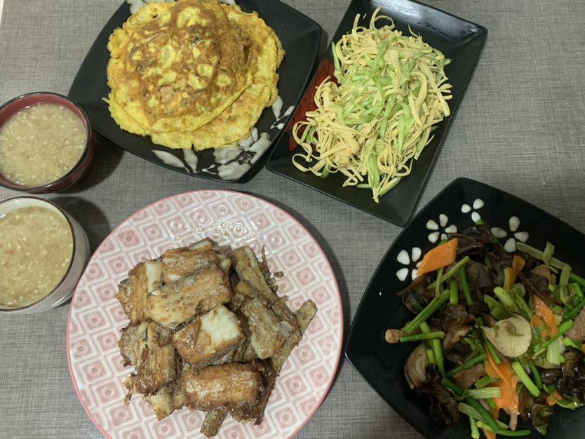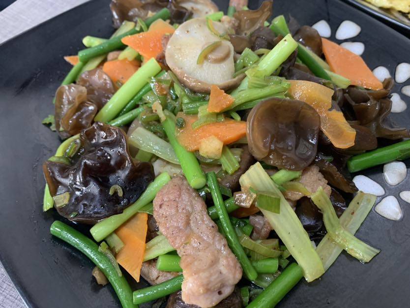 香菇蒜苔炒🥕木耳芹菜