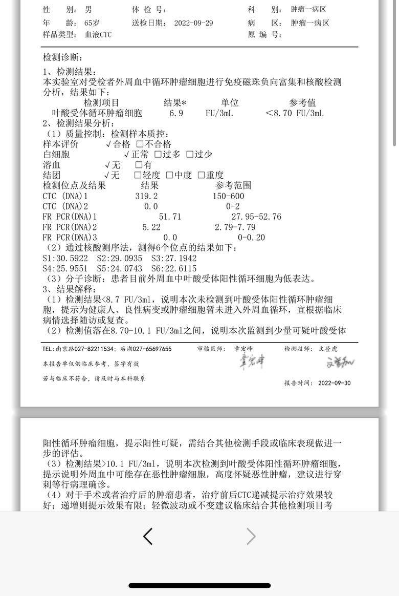 各种检查均无异常 血液循环检测中也没有癌细胞