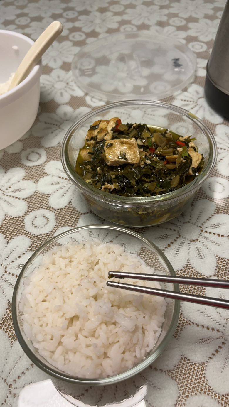 下了两天雨,也进入梅雨季了。生活日子就这么简单,2.5毛钱的菜。一碗水泡饭豆腐烧咸菜。