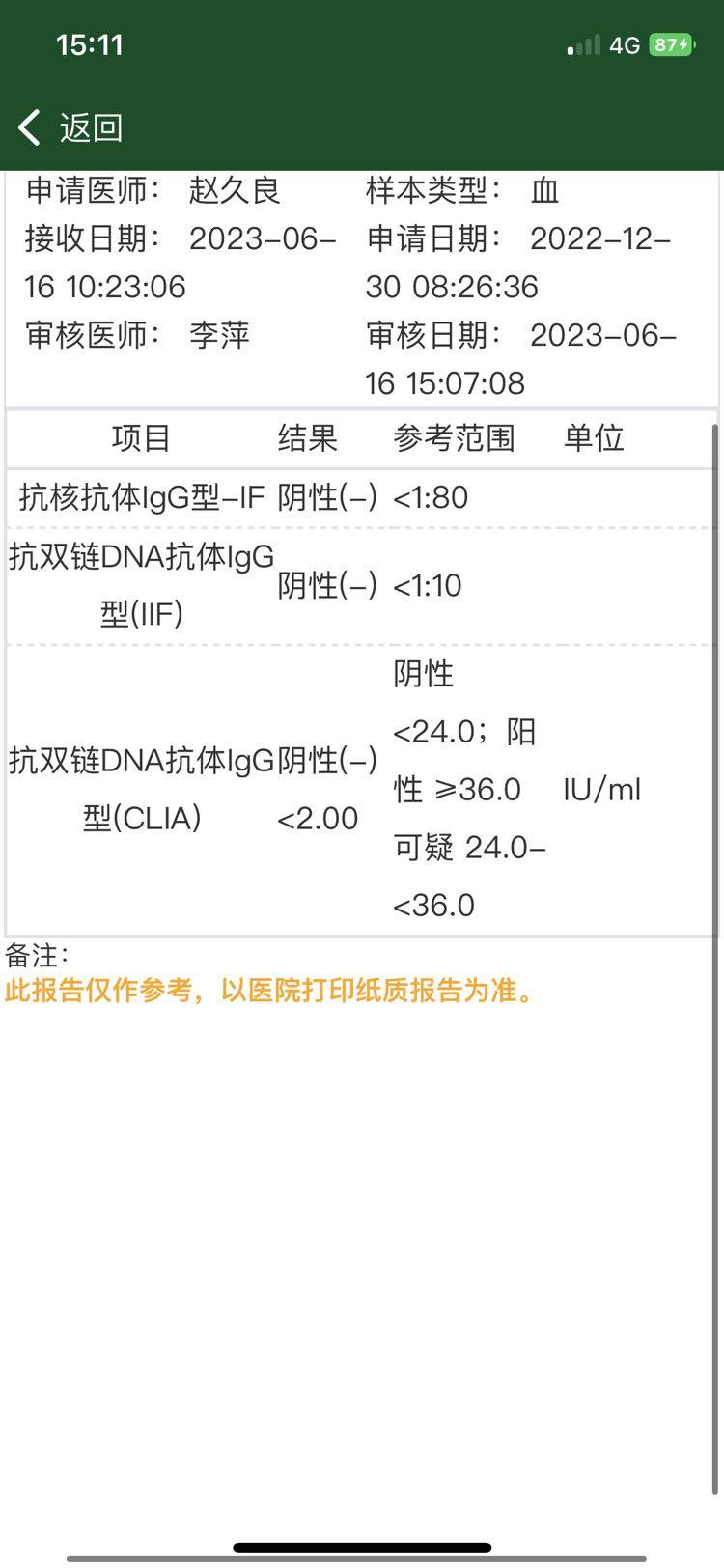 抗双链 抗核抗体全部转阴。结果不错嘛。