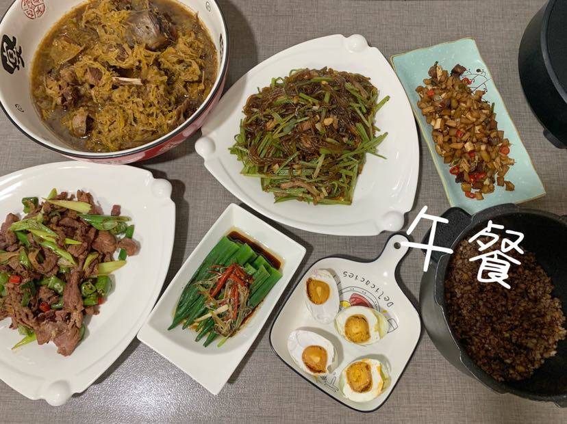 你这顿饭在我的食谱里只有杂粮饭和秋葵,你真有口福