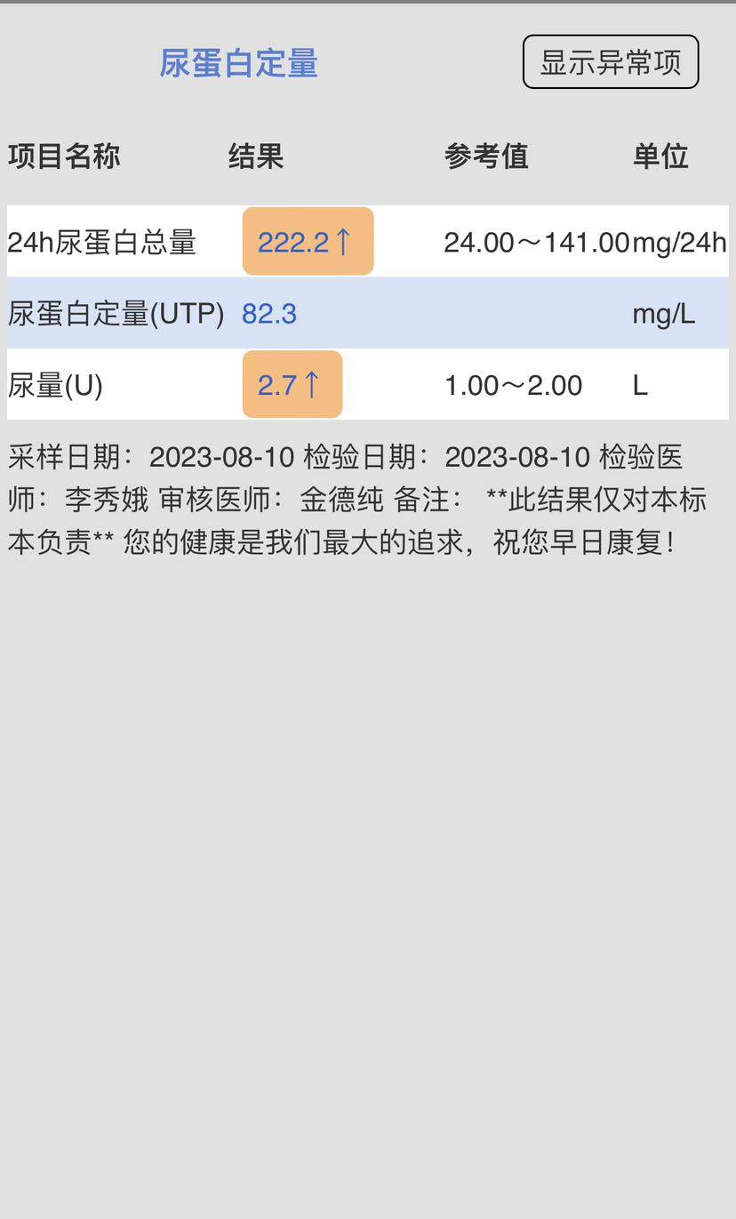 8月查的尿蛋白定量