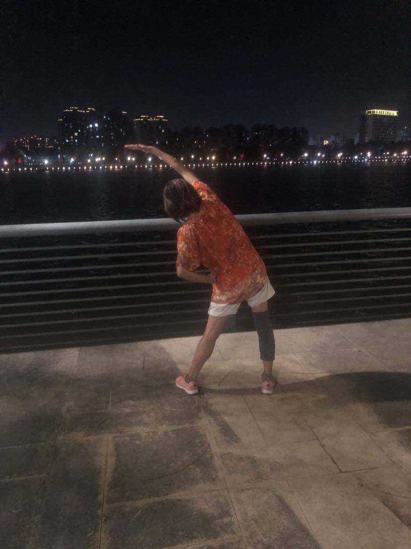 每天江边散步,自己先跟练一遍,然后第二遍再打卡。