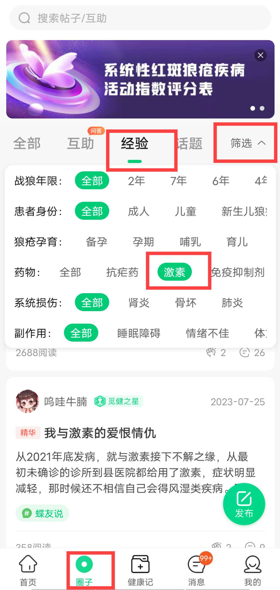 方法一:从经验区筛选“激素”查看大家分享的经验帖