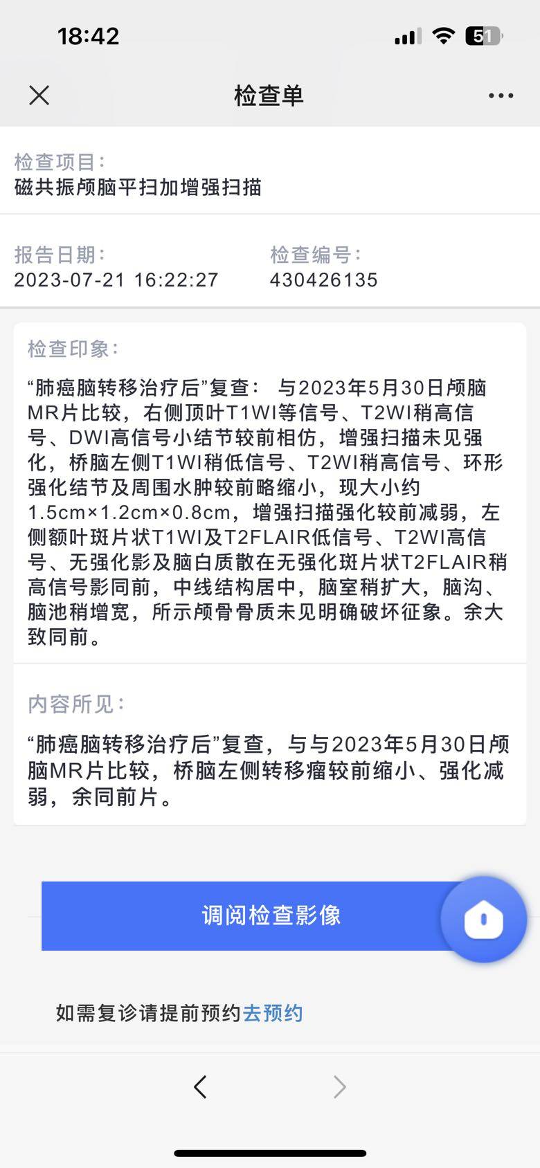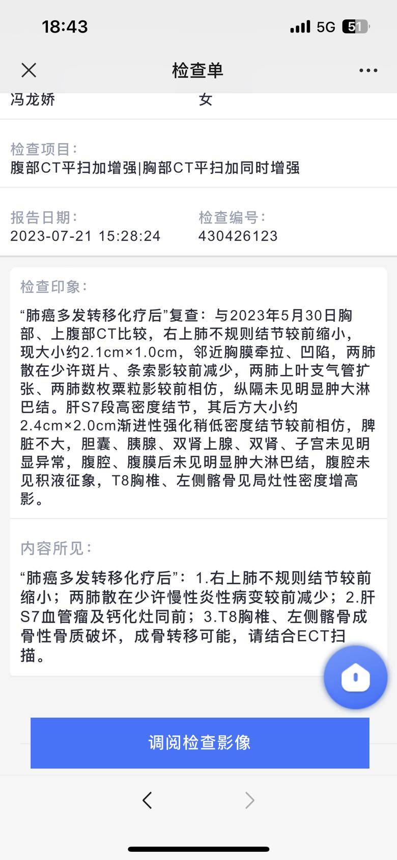 自一线奥西耐药后基因血检只有krasg13d突变,然后开始培美+贝伐+达克已经化疗4次 自第4次上个月24号化疗完之后回家一个礼拜白细胞低打了3天升白针之后人就不好了 总是感觉头不舒服 以为有进展 但这次复查的结果报告如下,只有癌胚抗原这次什高306了!化疗前吃奥西时都是163 化疗后第二三次都是83 ,主治医生建议下个月把达克换成伏美替尼或者换加免疫治疗?医生怀疑头部不舒服是5月份长了带状疱疹引起的神经痛后遗症,请各位的帮助