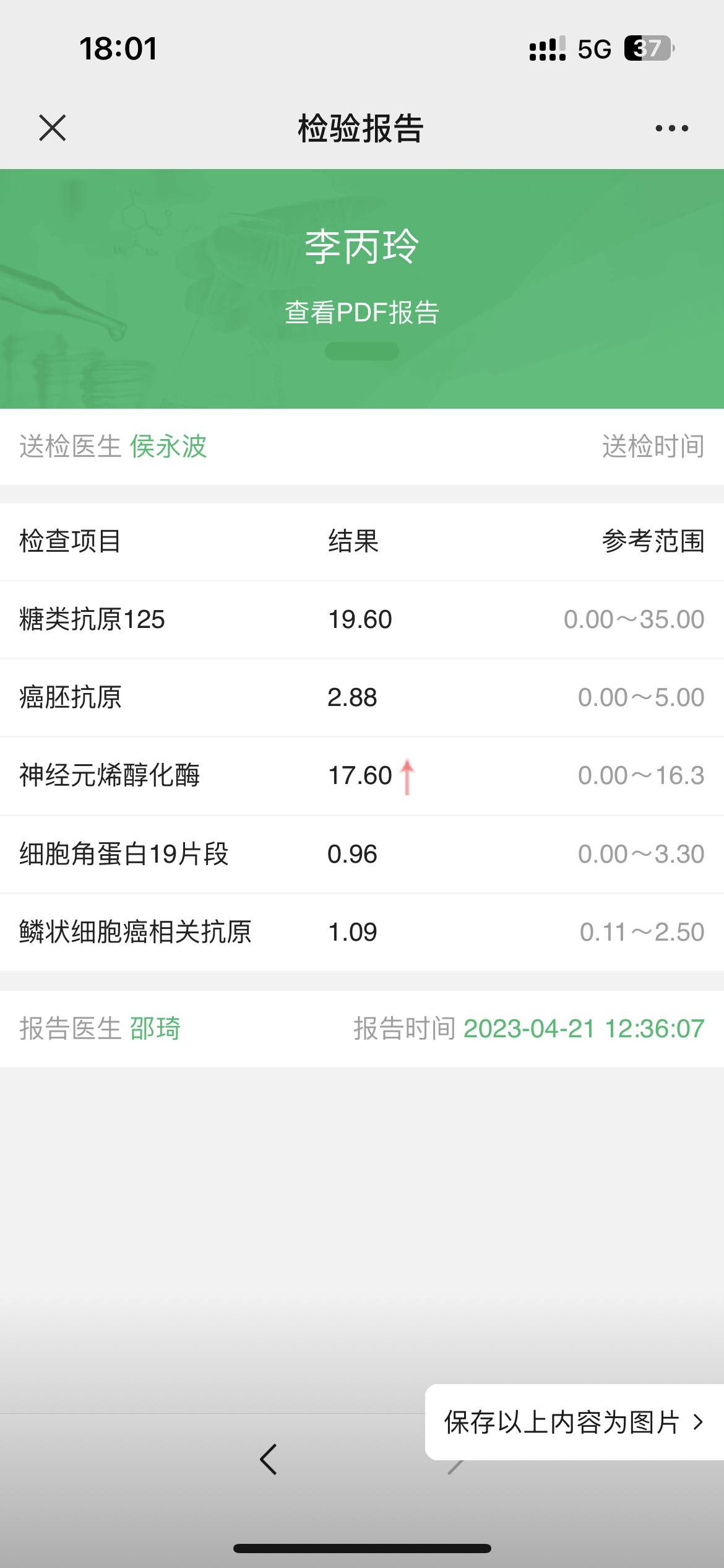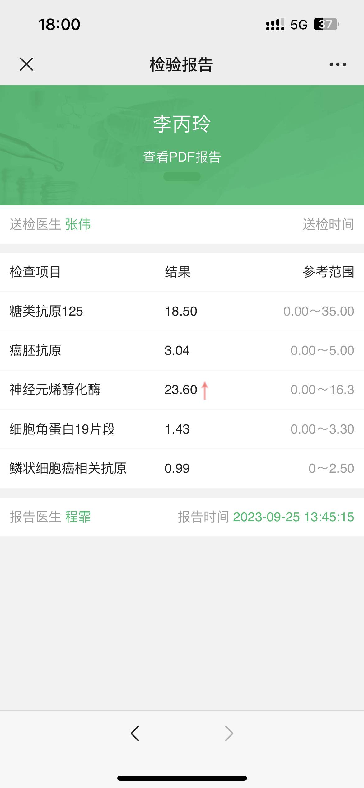 肿瘤五项,神经元三次检查,中间一次正常,前后一次高