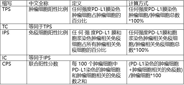 PD-L1表达的不同评分指标